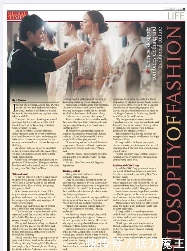 前几天 微博热搜上榜了一个 #中国男裁缝登上纽约时装周# 的话题 新闻源 |http://www.5cocoi.com 以裁缝自称的设计师 似乎并不多见 亮相在国际时装周舞台 甚至被环球时报、VOGUE、 中国日报等媒体 报道过他的中国风设计 25岁的东北男生张突然 17岁时在心里埋下了 成为服...
