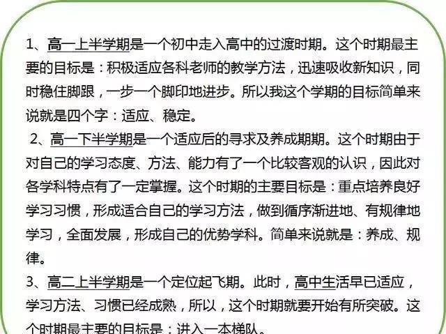 下面学姐就给大家分析一下从高一到高三的六个阶段,大家应该重视什么!希望各位家长们一定要转告给自己的孩子。