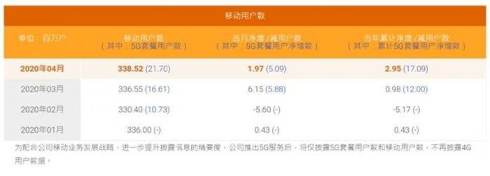 中国移动披露的数据显示,截至4月底,中国移动5G套餐用户数为4374.5万户。中国电信5G套餐用户为2170万户。两者相加后的5G套餐用户数超6500万户。中国联通暂没有单独披露5G用户数。