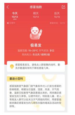 秋风起寒露至,墨迹天气打造秋季生活出行指南 正所谓秋风起,寒露至,在经历了火热的十一假期后,天气明显转凉,人们若不注意天气情况,很容易会影响到生活和出行,因此很多人在出行前,往往会提前查询一下墨迹天气等天气APP,再三确认天气情况后再出门。而对于用户而...