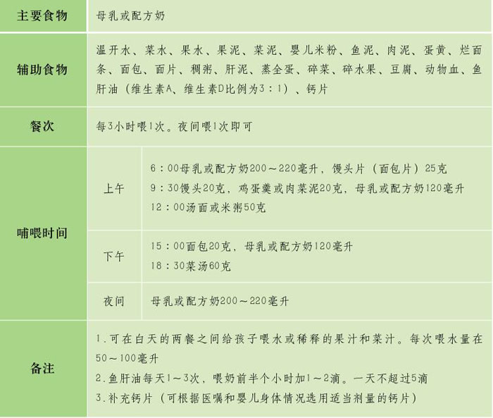 总的来说,这个月辅食添加的基本原则是:次数基本不变(一天3次),时间不动,辅食种类要多起来,并注意合理搭配,以保证充足而均衡的营养。