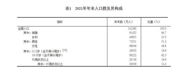 中新财经2月28日电 2月28日,国家统计局发布《2021年国民经济和社会发展统计公报》。年末全国人口141260万人,比上年末增加48万人,其中城镇常住人口91425万人。全年出生人口1062万人,出生率为7.52;死亡人口1014万人,死亡率为7.18;自然增长率为0.34。全国人户分离...