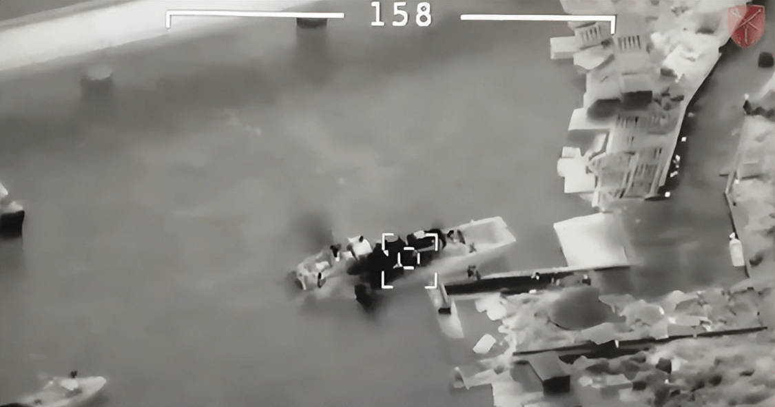 在公布的视频中可以看到,俄军一艘登陆艇被无人机的瞄准镜锁定,随后被发射导弹击中,艇上十几个士兵被大爆炸抛上空中,这一幕可谓是触目惊心!