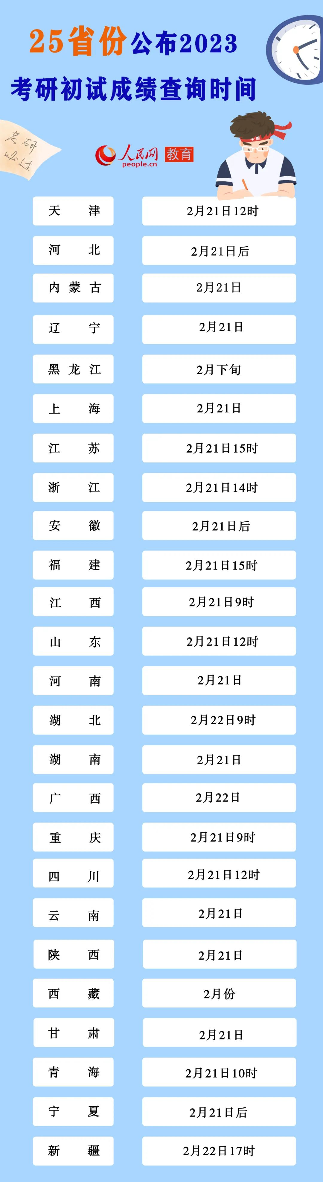 近日,湖北多所高校公布2023考研初试成绩查询时间,2月21日起,全国多地将陆续公布考研初试成绩,时间如下↓↓↓