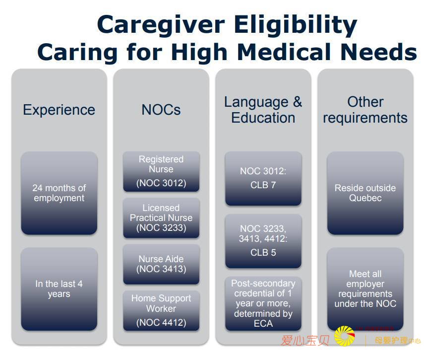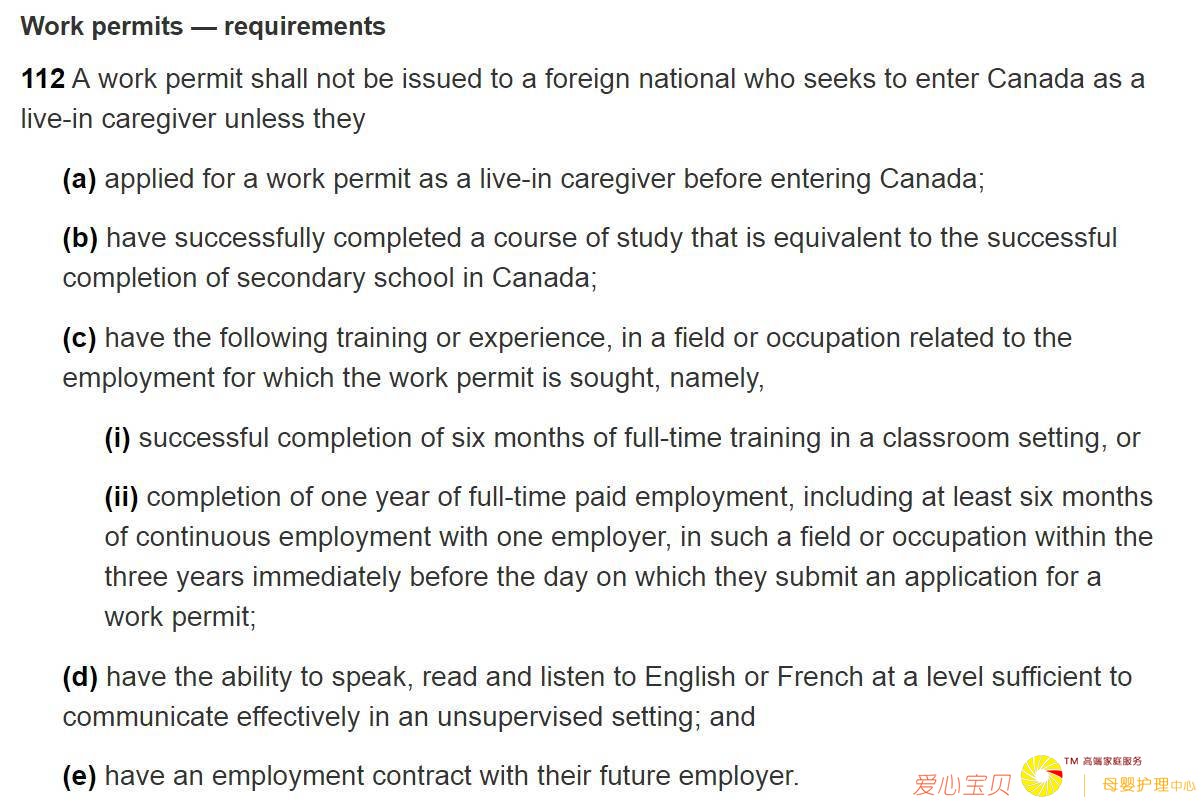 在Live-in caregiver项目中,对于不同类别也有不同类别的要求: