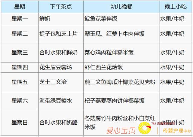 八、1 至 2 岁宝宝一星期食谱