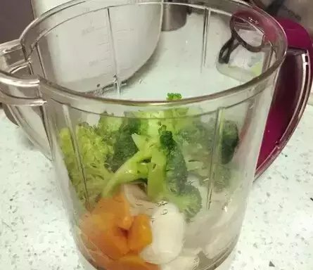 因为辅食机太少量不好打,所以做混合泥是很好的办法,几种蔬菜、肉类放在一起,营养丰富又全面。