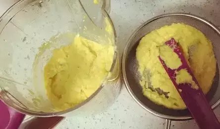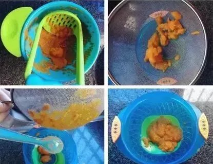 3)没有辅食机的话,也可以用研磨碗研磨后过筛,取比较细腻的部分。