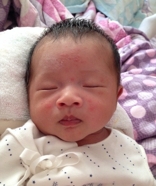 谁知道才半天不到的时间,宝宝身上的小红点越来越多,脸上额头上都长了疹子,不少都是水泡,连成一片的疹子瘙痒无比,折磨得宝宝睡不好觉,而且一直哭闹着抓挠,一家人哪见过这样的情况,就吓得赶紧连夜抱着笑笑去了医院。