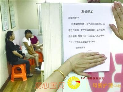 家政公司张贴关于收取“保姆高温费”的相关告示/晨报记者朱影影