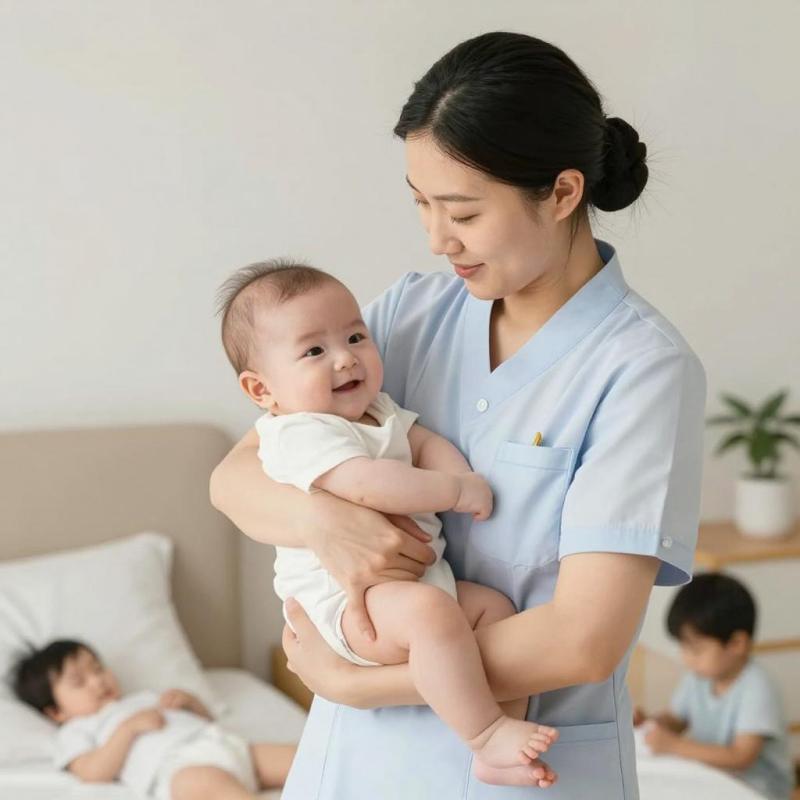 这一切都得益于全托管模式。宝宝和月嫂阿姨睡一个房间,我完全不用熬夜。每天阿姨都会给宝宝测黄疸、做抚触,我起夜偷偷看过一次,阿姨正抱着宝宝轻轻晃,很有耐心。